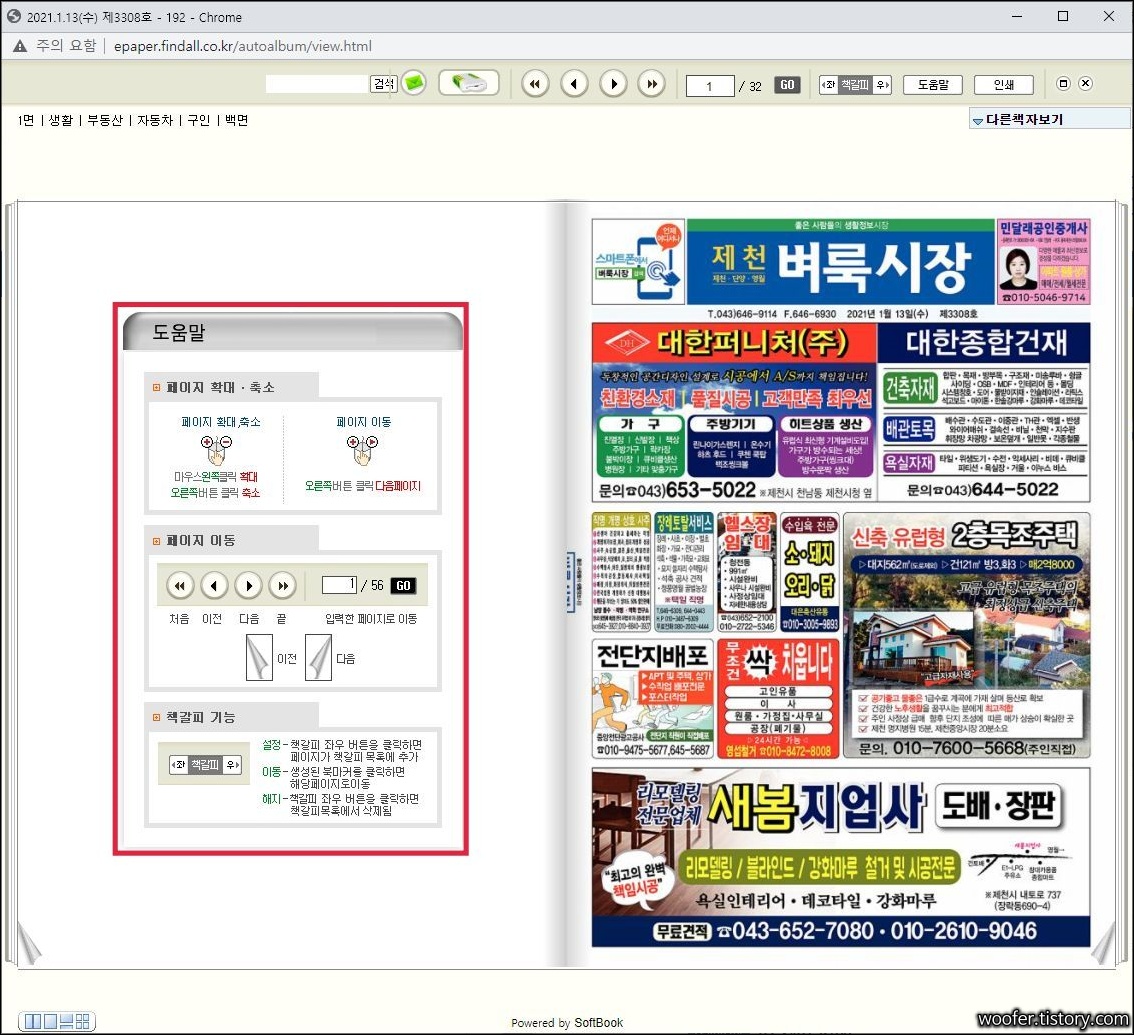 제천 벼룩시장 종이신문 그대로보기