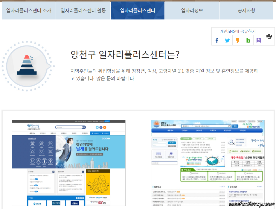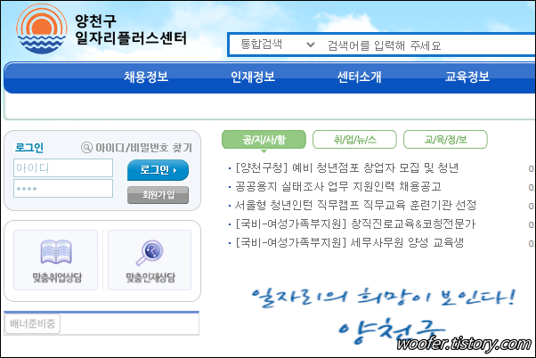 ▲ 양천구의 일자리플러스 센터입니다. 지역주민의 취업 향상을 위한 서비스인데, 온,오프라인으로 서비스를 제공하고 있습니다.