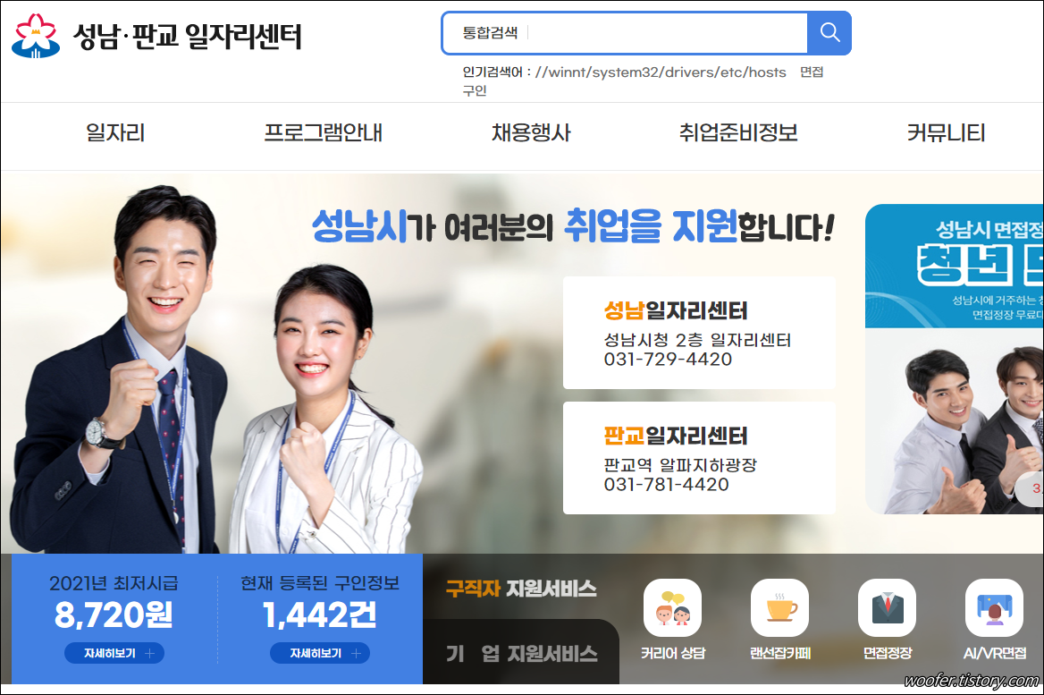 ▲ 성남, 판교 지역의 구인구직, 일자리 정보를 제공하는 홈페이지입니다.