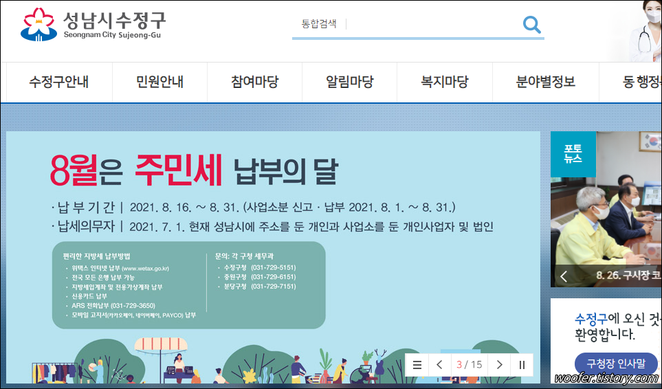 수정구청 홈페이지