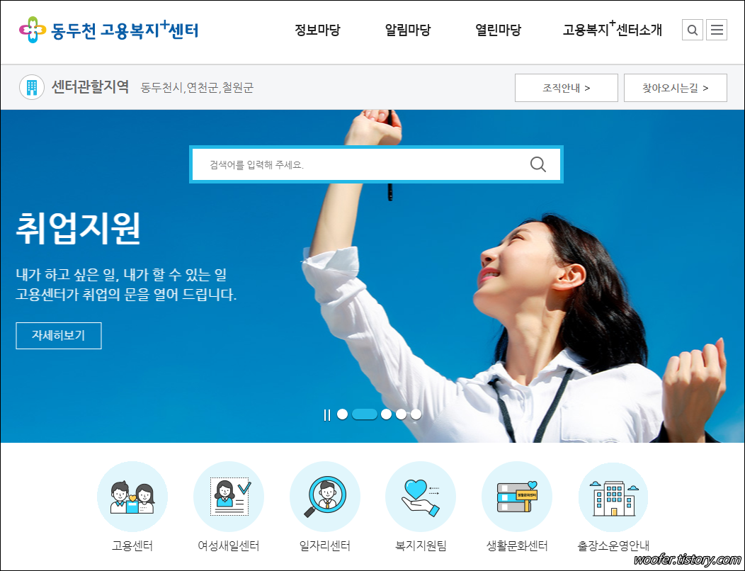 ▲ 동두천 일자리센터 홈페이지입니다. 동두천 관련 채용정보, 공채정보, 인재정보, 취업정보, 취업뉴스 등을 확인할 수 있습니다.
