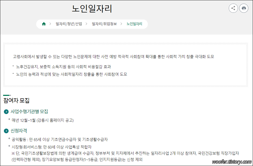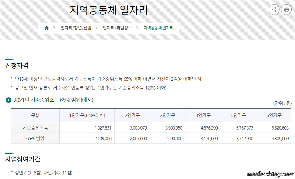 ▲ 강릉시청에서 진행하는 일자리 사업 관련 정보를 확인할 수 있습니다. 강릉시 거주자를 위한 공공근로사업이 있습니다.