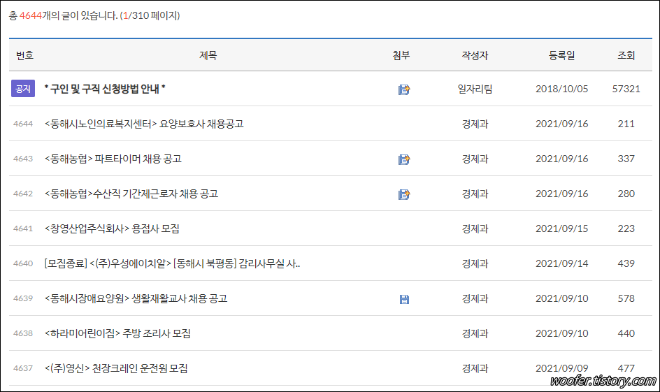 이번 포스팅에서는 동해시청 홈페이지에서 구인구직 및 일자리센터 관련 정보를 얻는 방법에 대해 알아보도록 하겠습니다.