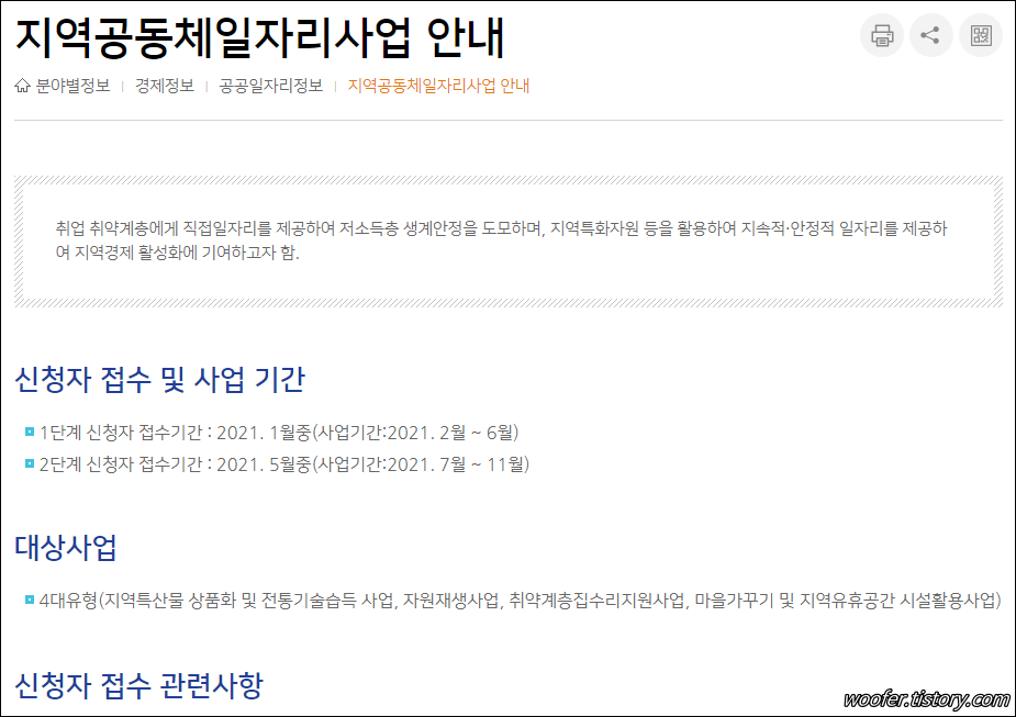 ▲ 취업 취약계층을 대상으로 한 지역공동체 일자리사업 등의 공공일자리 사업정보를 확인할 수 있스니다.