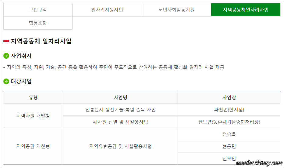 ▲ [분야별정보] - [일자리교육생활] 메뉴에서 청송군의 구인구직, 일자리 관련 정보를 제공하고 있습니다.
