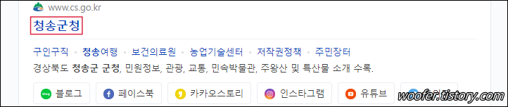▲ 검색 포털에서 '청송군청' 을 검색해 청송군청 홈페이지로 접속합니다. 해당 홈페이지에서 청송군의 생활, 보건, 민원, 행정, 복지, 관광 등의 정보, 소식을 제공하고 있습니다.
