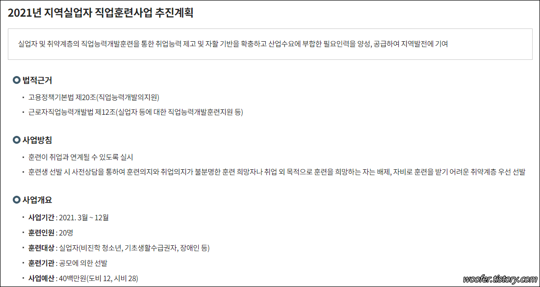 ▲ [고용촉진훈련] 메뉴에서는 지역실업자를 위한 직업훈련사업 관련 내용을 확인할 수 있습니다. 지역 내 청소년, 기초생활수급자, 장애인 등의 직업훈련을 제공합니다.