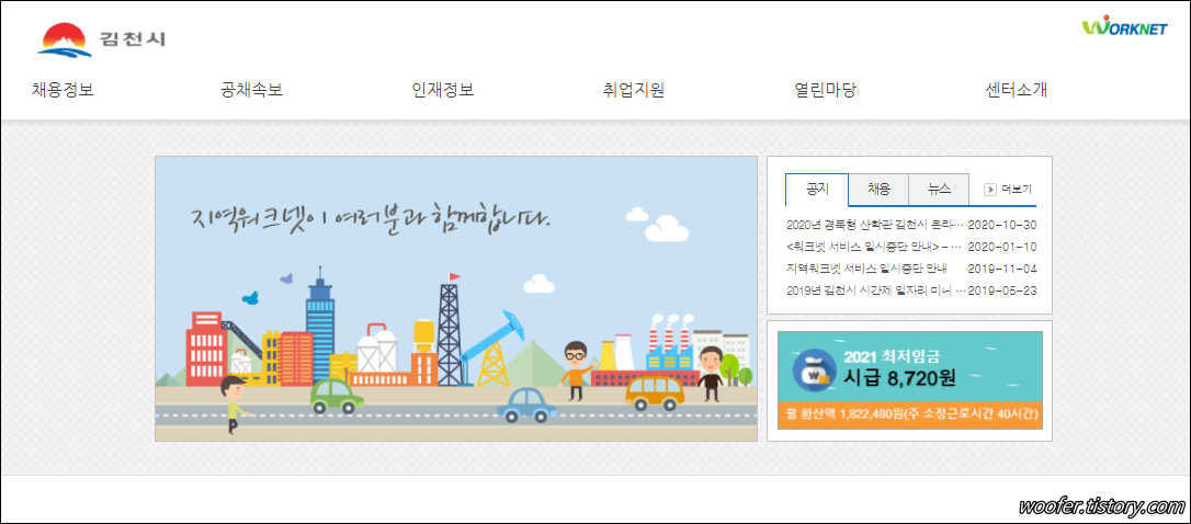 ▲ 김천시 일자리센터는 김천에 관련된 일자리, 채용정보, 공채속보, 취업뉴스, 취업정보 등을 확인할 수 있는 사이트입니다.
