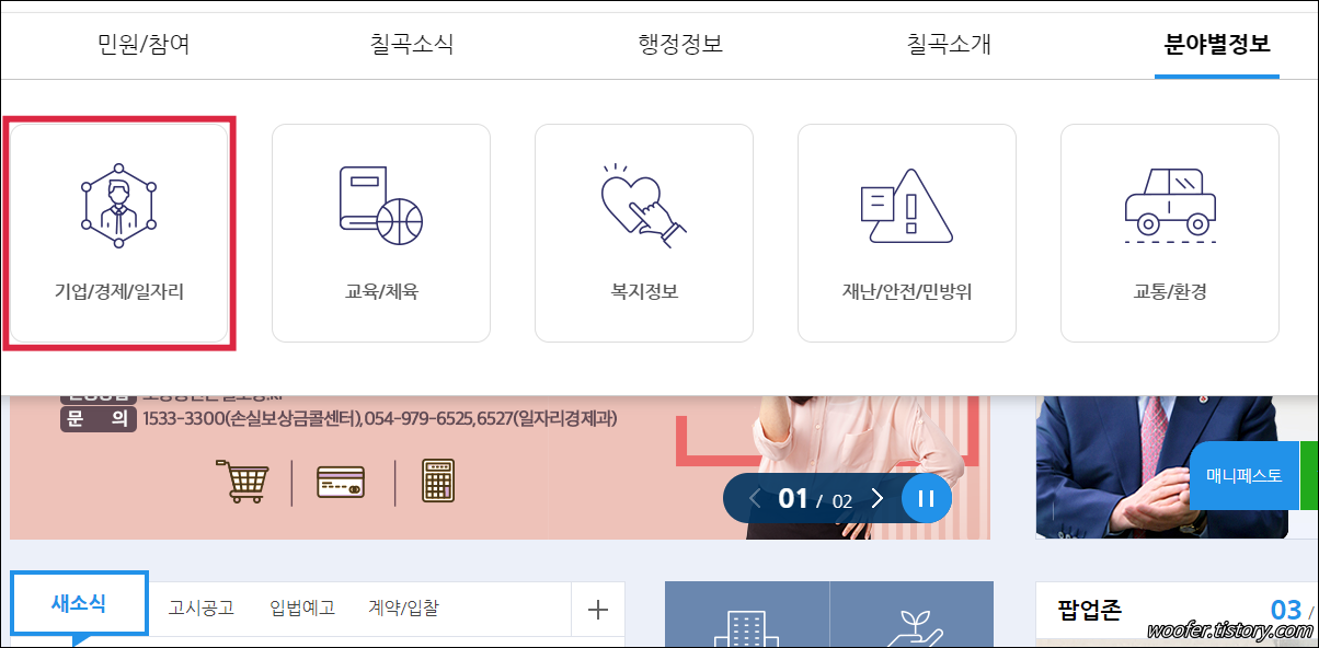 이번 포스팅에서는 칠곡군청 홈페이지에서 구인구직 및 일자리센터 관련 정보를 얻는 방법에 대해 알아보도록 하겠습니다.