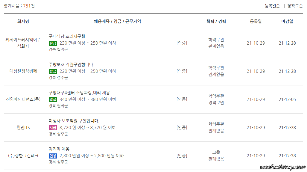 | 성주군청 구인구직 일자리센터 취업정보 사이트 (0) | 2021.11.04 |