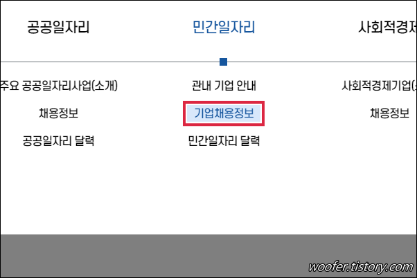 ▲ [민간일자리] - [기업채용정보] 메뉴에서 의성군의 일반기업, 민간기업의 채용정보 검색할 수 있습니다.